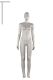 Manichino femminile snodabile in polistirolo grigio su base regolabile.