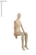 Manichino femminile, con busto rivestito in tessuto e braccia in legno, seduto.