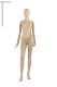 Manichino femminile stilizzato con busto rivestito in tessuto e braccia in legno.